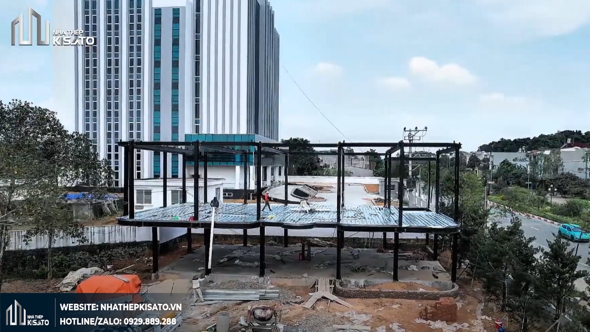 Video chi tiết quá trình lắp dựng công trình nhà khung thép 2 tầng