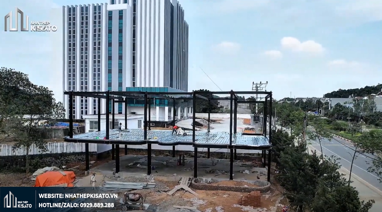 Sở hữu lợi thế đắc địa trên thành phố Yên Bái chủ đầu tư mong muốn chọn phương án và xây dựng nhanh chóng để đưa vào khai thác kinh doanh. Mô hình kinh doanh ở đây là mô hình kinh doanh quán Cafe và khu vui chơi trẻ em. Nhà Thép Kisato đã đưa ra giải pháp xây dựng nhà khung thép giúp cho công trình đưa vào hoạt động nhanh, tiết kiệm được rất nhiều thời gian. Hơn nữa, với phương án nhà khung thép sẽ mang đến kiến trúc vượt xa hơn những kiểu kiến trúc thông thường.